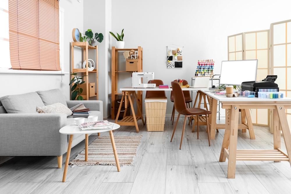 Choose work surfaces that resist staining and are easy to wipe clean. Consider installing a section of countertop at standing height or investing in an adjustable height desk for projects that require different working positions. Include adequate space for cutting mats and measuring tools.