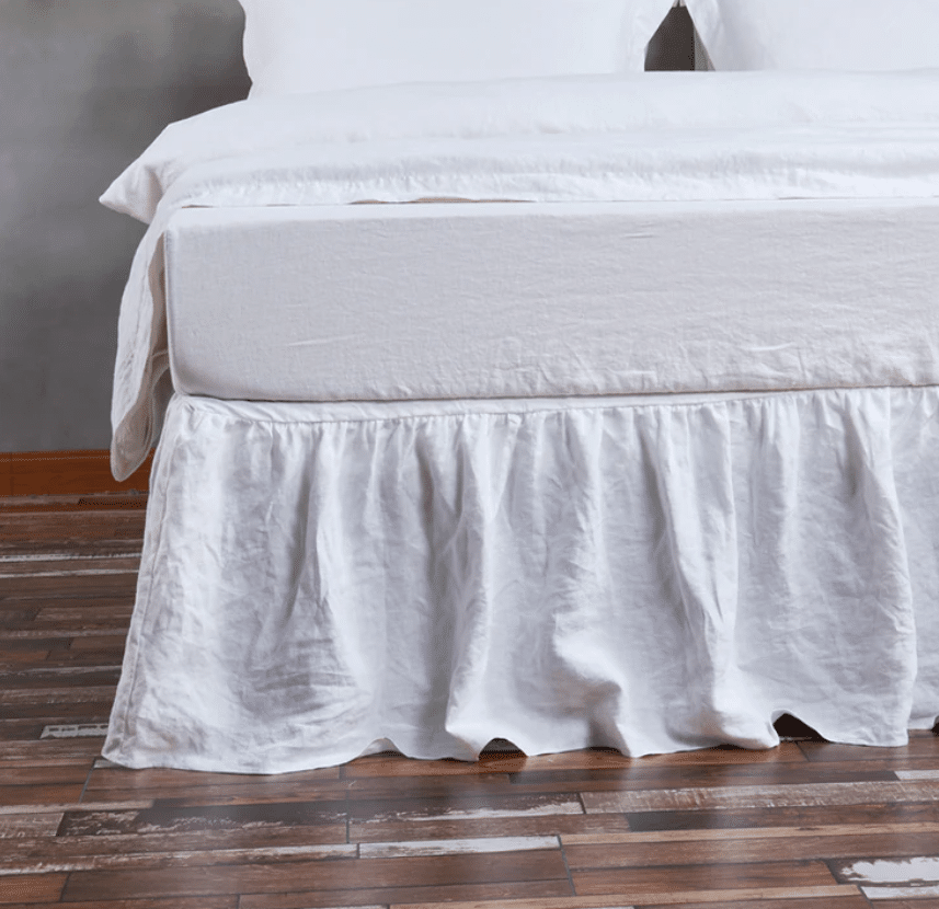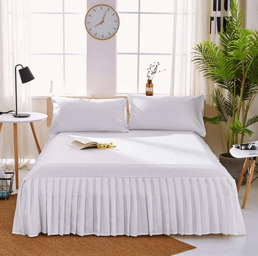 This type of bed valance is designed to wrap around the bed base like an elastic band. It’s super easy to put on and take off, making it perfect for those who want a hassle-free option. If you like to change up your bedroom decor often, this is a great choice since it’s simple to switch out.