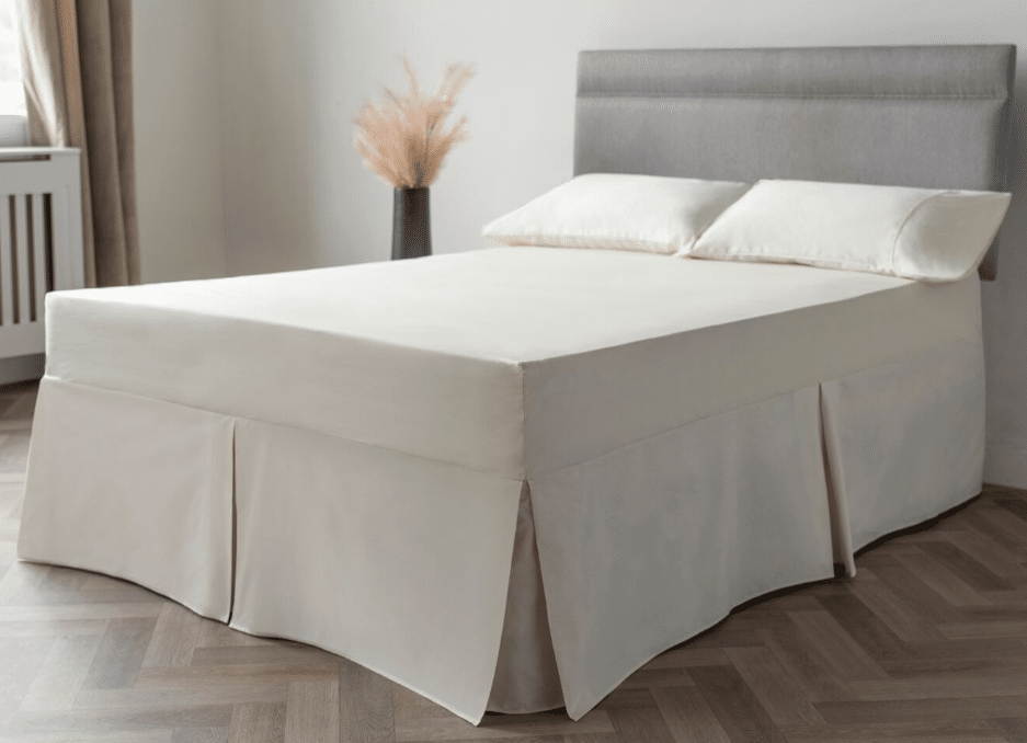 Also known as a bed skirt, it’s a decorative piece of fabric that drapes around the base of your bed. It covers the lower part of the bed frame or divan, creating a seamless and polished appearance. It’s not just about looks, though—it also has practical benefits, like keeping dust from collecting under the bed and concealing storage boxes or anything else you might have tucked away beneath it.
