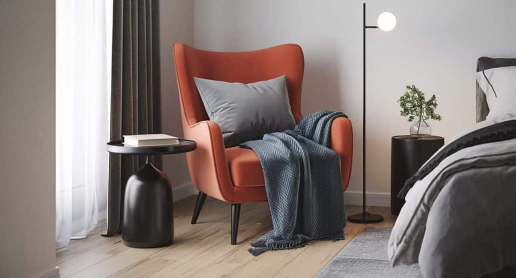 Add character to your bedroom corner with a stylish accent armchair that complements your decor.