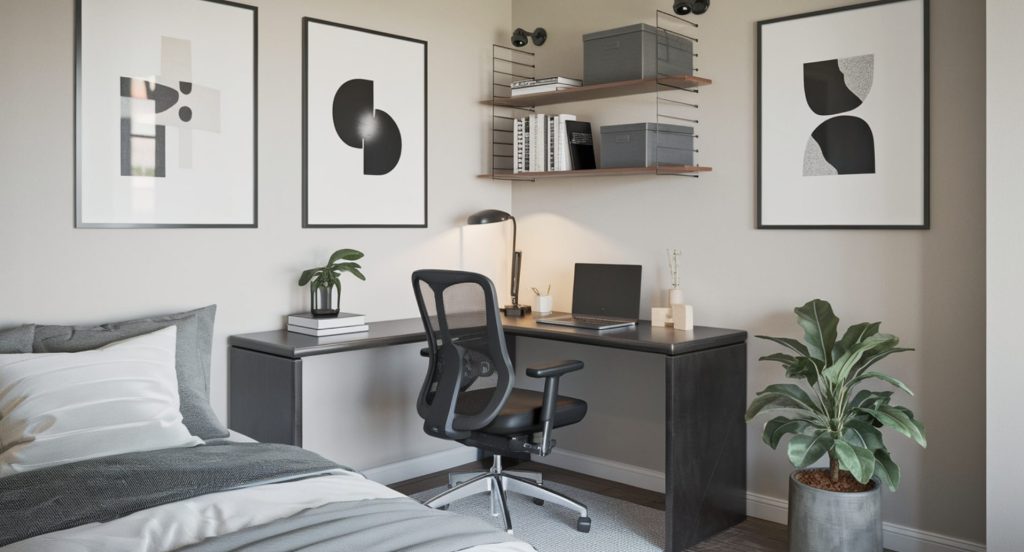 Turn your corner into a productive workspace with a sleek, compact desk and a comfortable ergonomic chair.