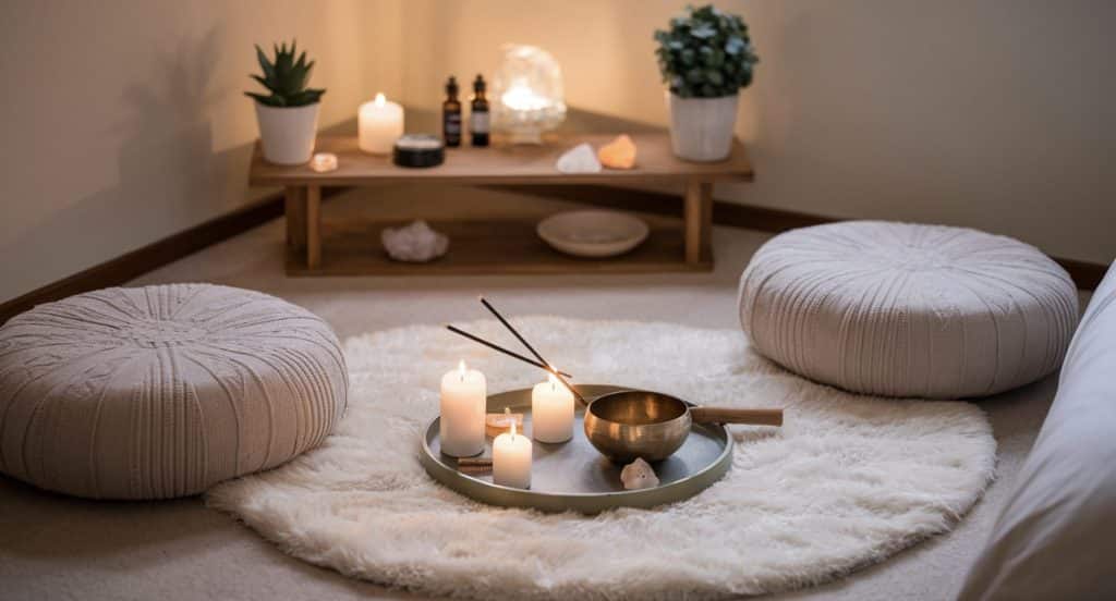 Add a small table or tray to hold candles, incense, or essential oils for a calming ambiance.