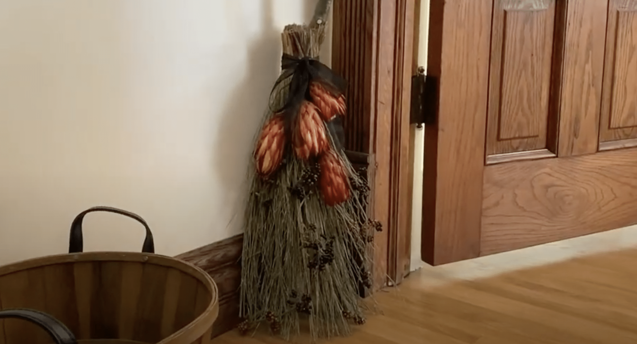 Your handmade broom creates perfect fall magic in any spot. I like to prop mine near the front door or hang it at an angle above the fireplace. Try setting it in a corner with fake cobwebs and small pumpkins for extra spooky style.