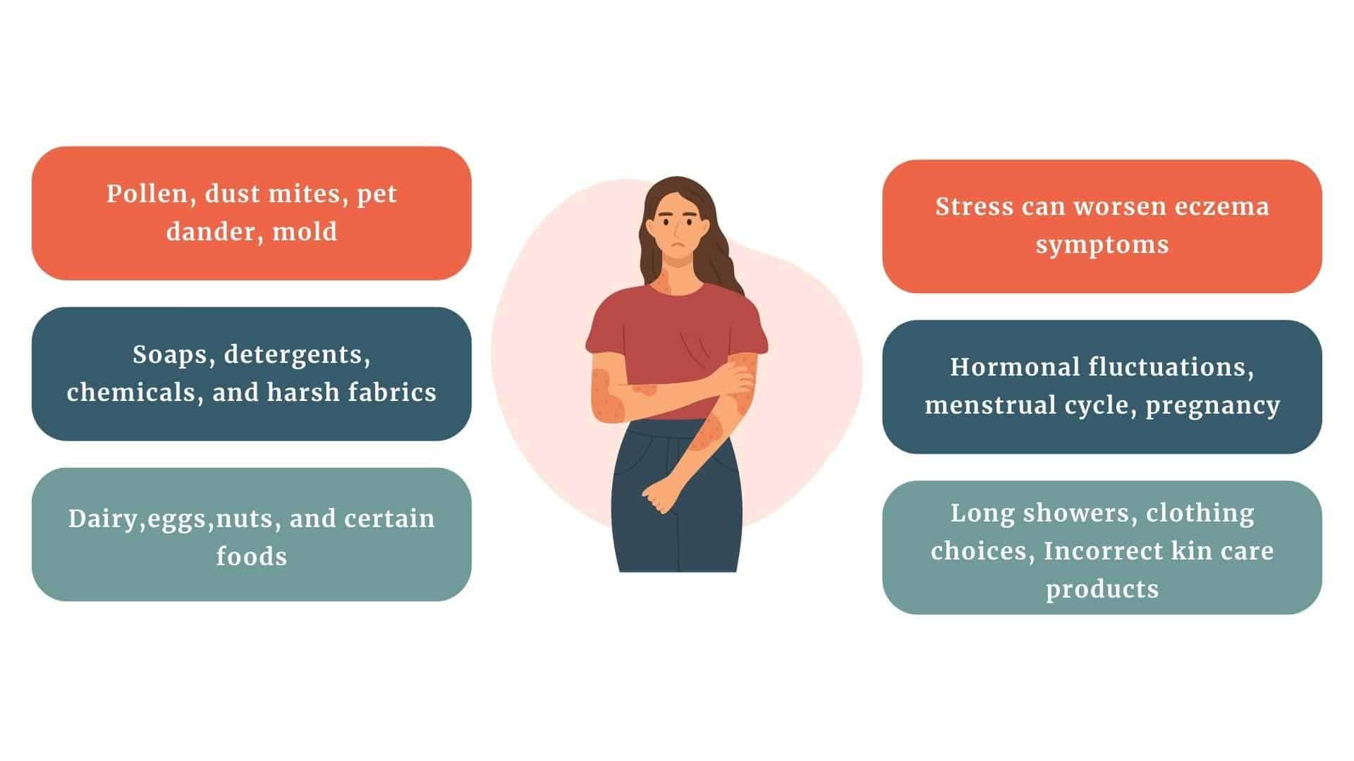 The triggers for the different types of eczema can vary. We’re going to include the ones that tend to be pretty common across all of them.
