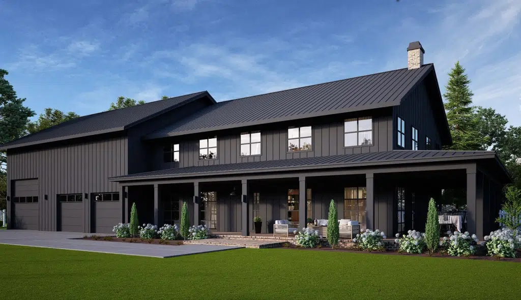 All in all, this 2-story, 4-bedroom farmhouse barndominium with a 3-car garage offers a perfect blend of modern farmhouse convenience. The farmhouse barndominium interior creates an amazing atmosphere that welcomes you with open arms. The open layout ensures easy communication between living spaces, making it a great place to gather with friends and family. The spacious bedrooms provide a comfortable spot for every family member.