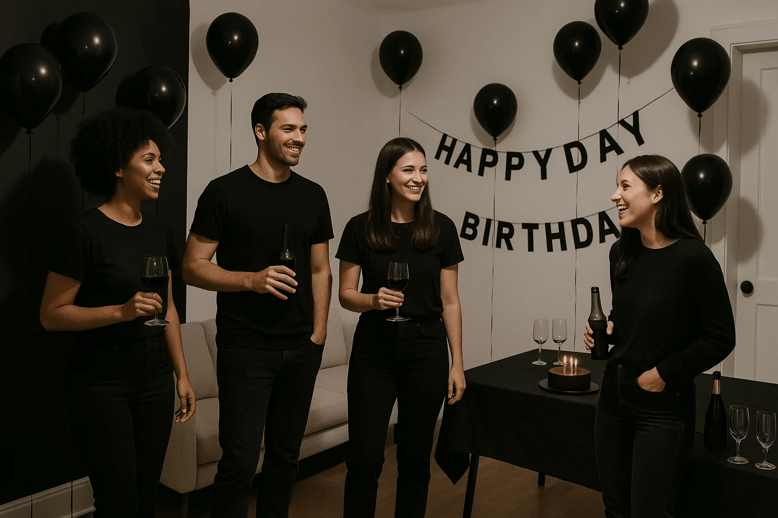 Picture this: you show up to a black-themed party, and it feels like you’re walking into a spy movie—everyone’s dressed in sleek black, and you half-expect a dramatic chase scene to break out. But don’t worry, no secret missions here—just a night of fun!