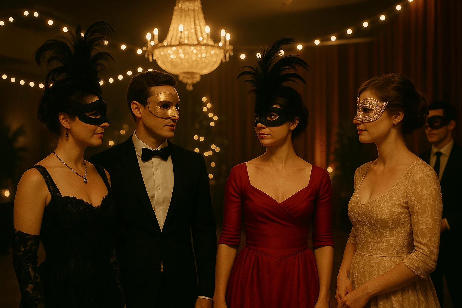 - Masquerade Ball: A Masquerade Ball brings mystery and elegance. Guests wear black attire paired with ornate Venetian masks in gold, silver, or jewel tones. Decorate with chandeliers, black lace, and dark floral arrangements. This theme invites guests into a fantasy world, with dramatic lighting and the black theme setting the tone for an enchanting evening.