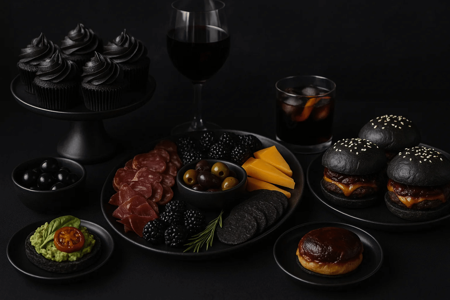 Just because the theme is black doesn’t mean your menu has to be boring. In fact, this is the perfect opportunity to get creative and incorporate dark, dramatic dishes that enhance the overall vibe. Here are three (3) suggestions: