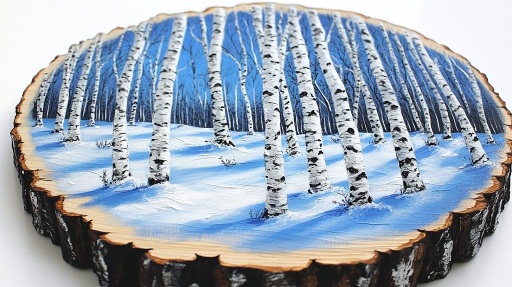 • Sketch and Paint: Use black and white acrylic paints to create birch tree designs.