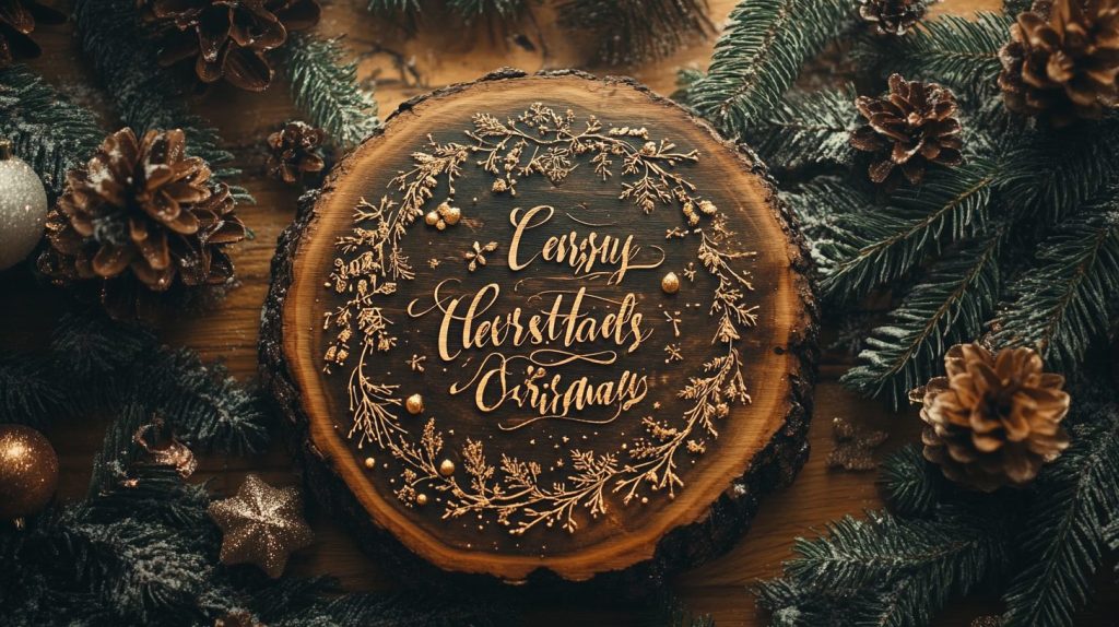 Spread the season’s joy with Festive Holiday Messages, from “Merry Christmas” to “Happy Holidays,” elegantly scripted on wood slices.