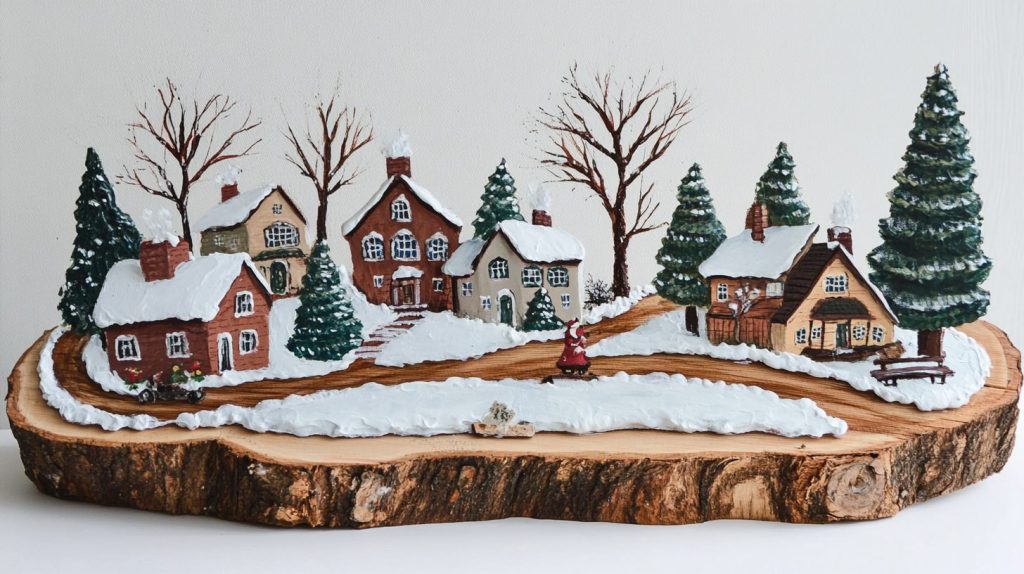 • Add Snow Effects: Use white paint to add snow on rooftops and trees.