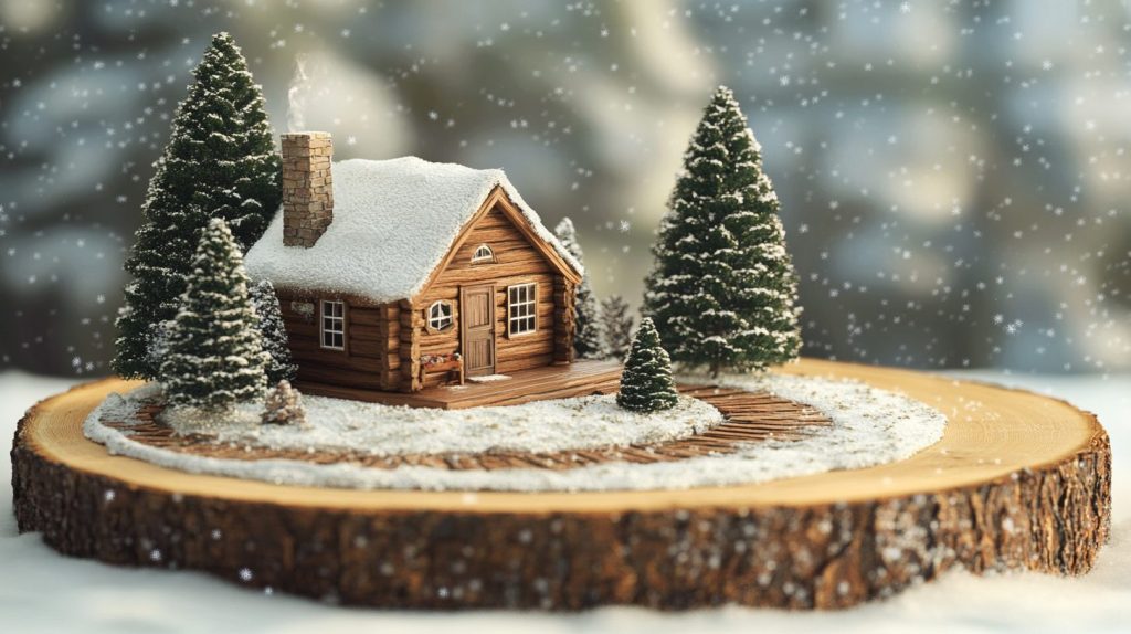 • Color Details: Use earth tones for the cabin and white for snow.