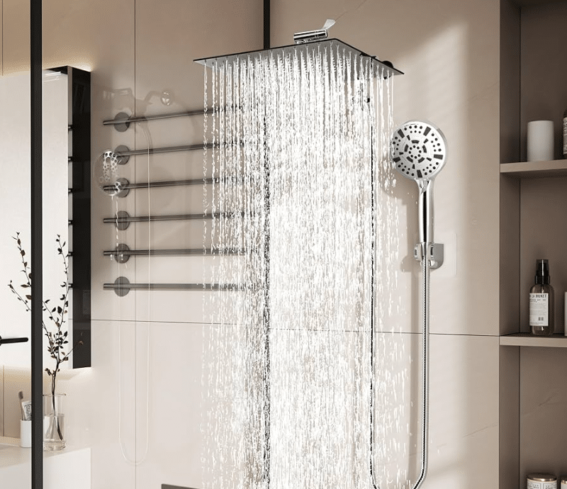 The sleek, modern design of a rainfall showerhead adds a luxurious touch, enhancing the overall aesthetics of the space.