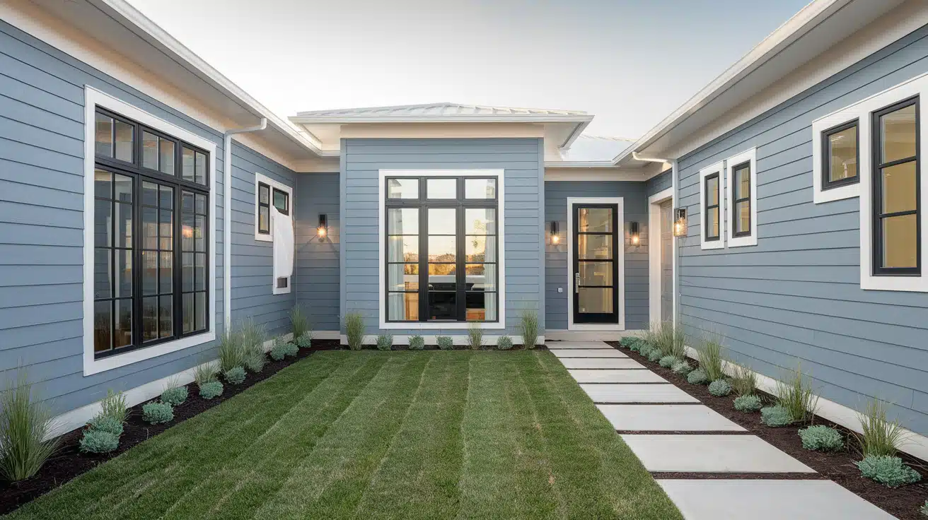For city dwellings, blue-grey siding on a sleek townhouse or duplex can create refined urban appeal. I recommend complementing this look with metallic accents and thoughtful urban landscaping ideas.